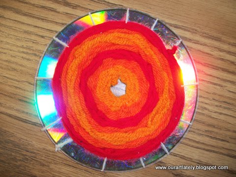 Not only does this project focus on the creation of a woven mandala, when you put display all the CD's next to each other, it's also a great way to talk about how colors play off of each other, as in Kandinsky's Study of Concentric Circles.
